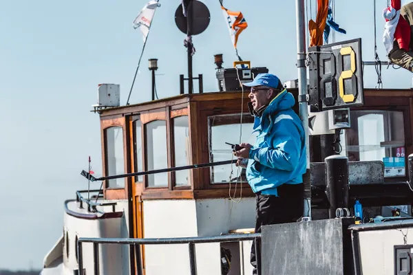 “Je vaart deze boot bijna als een open boot, dus iedereen moet vol aan de bak. Ze waren echt bekaf, maar het liep gewoon heel goed.”